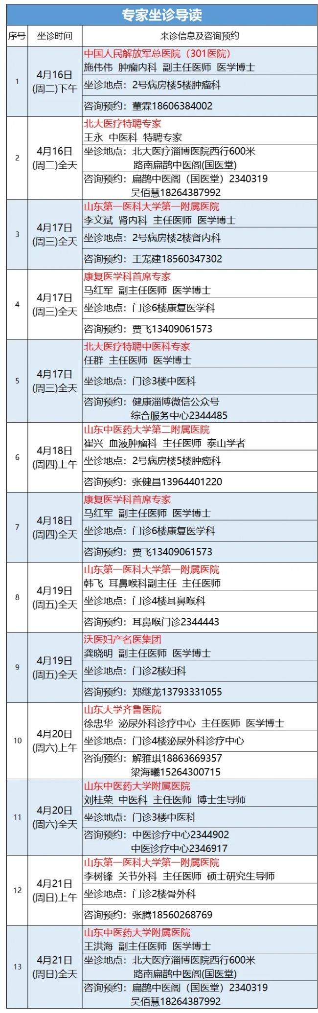 4月16日——4月21日(周二至周日)中國人民解放軍總醫(yī)院腫瘤內(nèi)科副主任醫(yī)師施偉偉,山東大學(xué)齊魯醫(yī)院泌尿外科主任醫(yī)師徐中華,山東第一醫(yī)科大學(xué)第一附屬醫(yī)院腎內(nèi)科主任醫(yī)師李文斌,山東中醫(yī)藥大學(xué)第二附屬醫(yī)院腫瘤血液科主任醫(yī)師崔興,山東中醫(yī)藥大學(xué)附屬醫(yī)院主任醫(yī)師劉桂榮等11位名醫(yī)將來北大醫(yī)療淄博醫(yī)院(淄博經(jīng)開區(qū)醫(yī)院)坐診。廣大市民如有就診需求,可以通過電話、現(xiàn)場咨詢等方式提前預(yù)約。