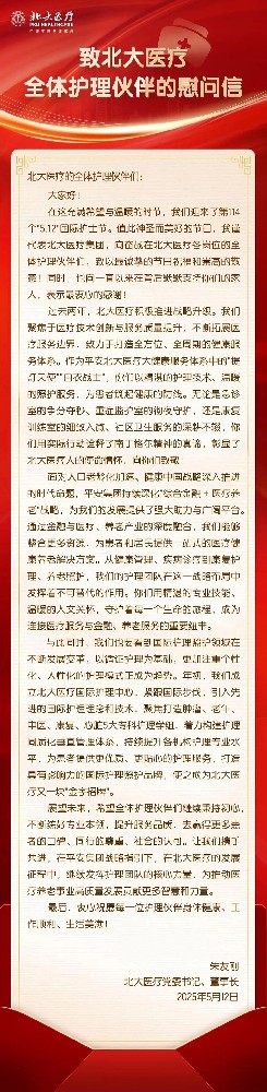 北大醫(yī)療黨委書(shū)記、董事長(zhǎng)朱友剛,致北大醫(yī)療全體護(hù)理伙伴的慰問(wèn)信!