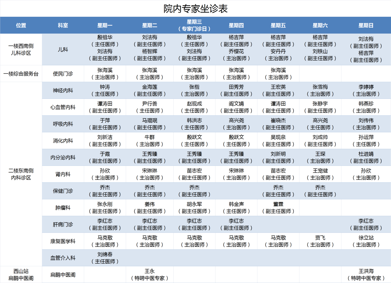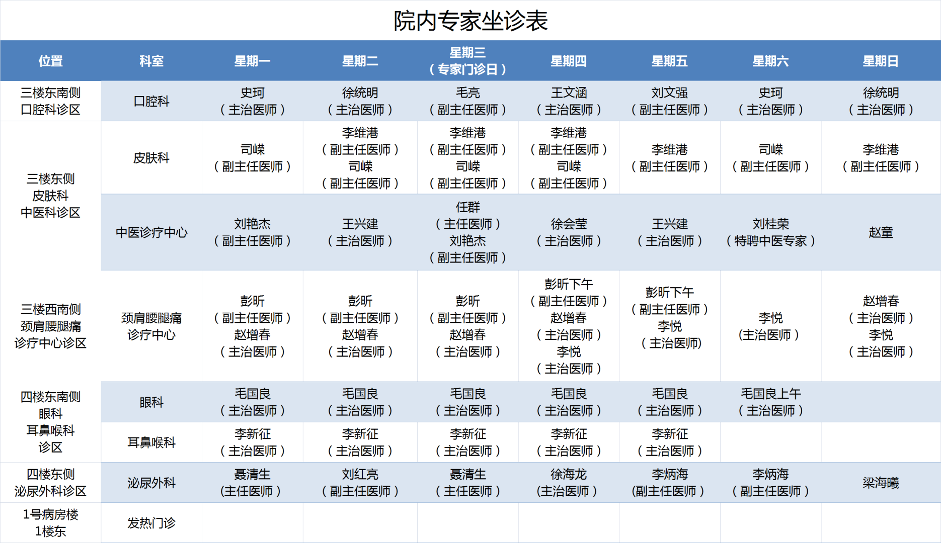 12月18日——12月24日,專家出診表來了!