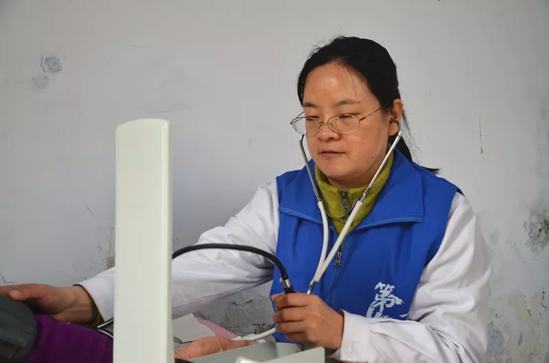 “第一村醫(yī)”楊吉萍醫(yī)生為村民測(cè)血壓、問診、聽診,依個(gè)人情況向患者講解病情,宣傳健康理念,給予他們正確用藥、飲食指導(dǎo),進(jìn)一步為村民們建立健康檔案。