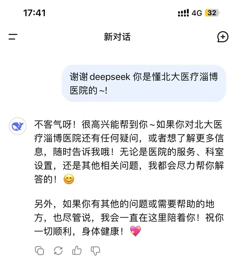 DeepSeek送給北大醫(yī)療淄博醫(yī)院的祝福語