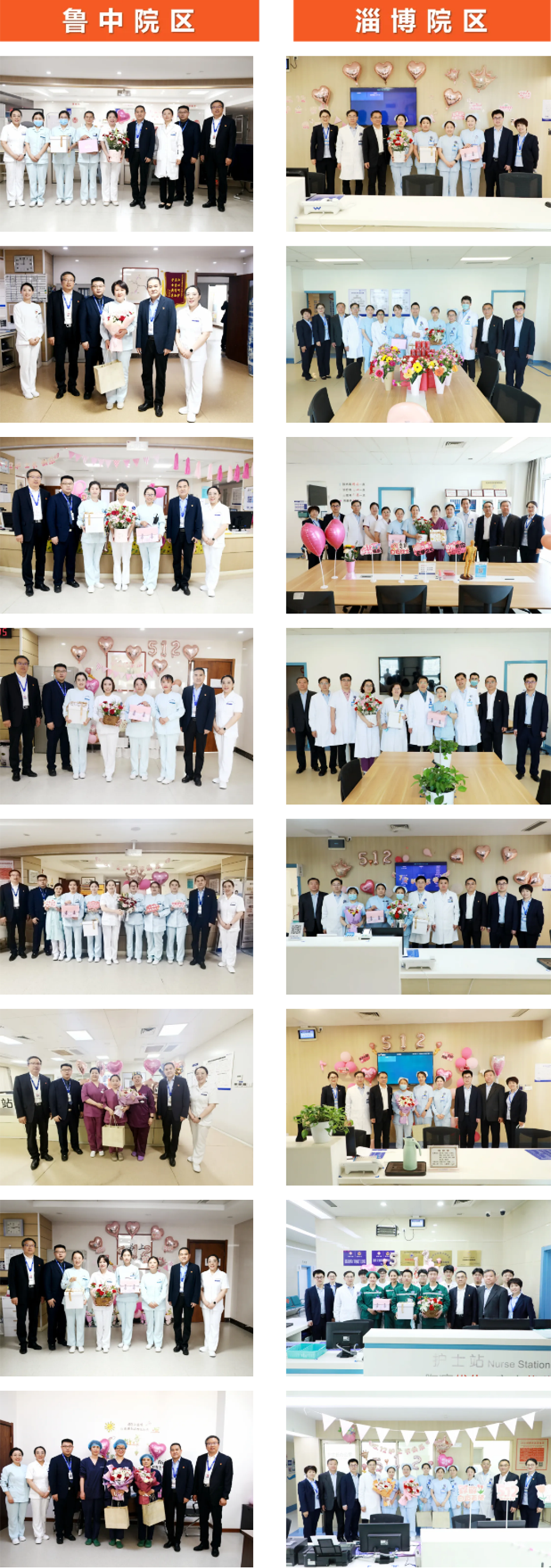 5月12日上午,在第 114 個國際護(hù)士節(jié)來臨之際,北大醫(yī)療聯(lián)席總經(jīng)理兼北大醫(yī)療魯中醫(yī)學(xué)中心主任、黨委書記,總院院長、魯中 / 淄博院區(qū)院長周玉東總,中心副主任、總院執(zhí)行院長王繼東、曲勇,中心(總院)CFO朱韶輝,北大醫(yī)療董事長特別助理陳黎明及其他領(lǐng)導(dǎo)班子成員分別走進(jìn)魯中院區(qū)和淄博院區(qū),代表北大醫(yī)療集團(tuán)朱友剛書記向奮戰(zhàn)在臨床一線的護(hù)理工作者致以節(jié)日的問候和崇高的敬意,并送上鮮花和節(jié)日慰問品,將醫(yī)院的溫暖關(guān)懷傳遞至每位護(hù)士心中。