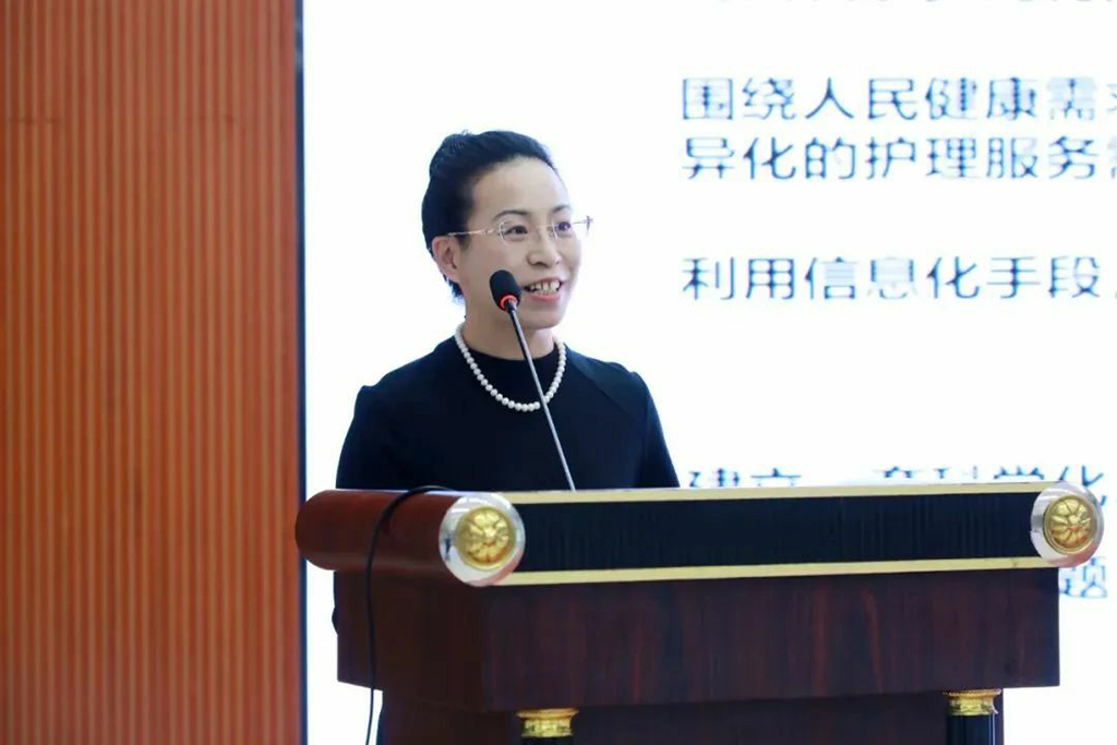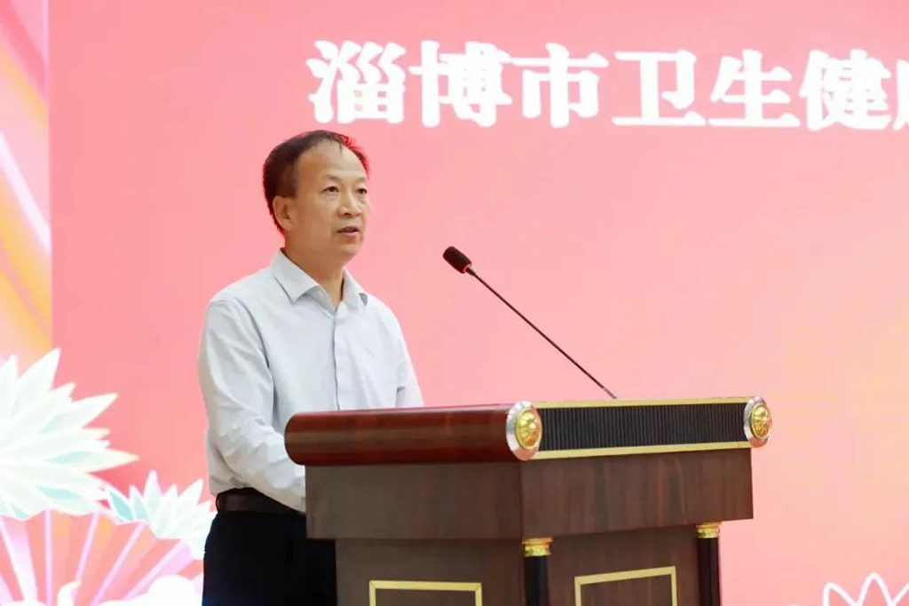 淄博市衛(wèi)生健康委副主任、二級調(diào)研員劉觀湘為國家級護(hù)理榮譽(yù)代表頒獎。