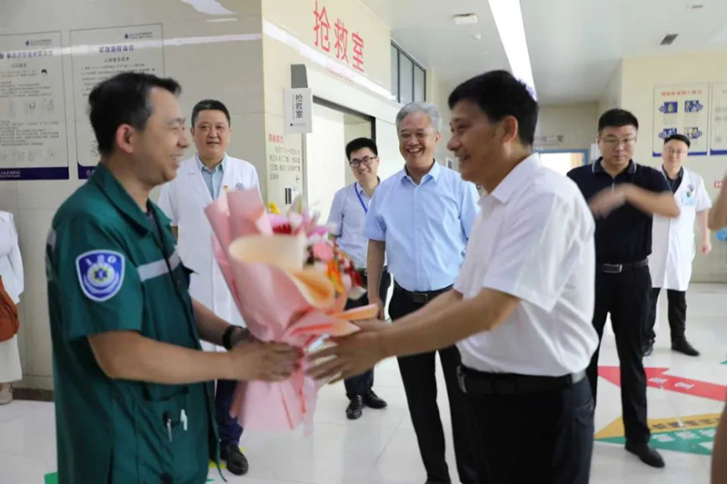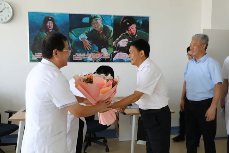 8月19日,在第八個(gè)“中國(guó)醫(yī)師節(jié)”來(lái)臨之際,南部生態(tài)產(chǎn)業(yè)新城發(fā)展中心黨組成員、副主任郎咸輝;南部生態(tài)產(chǎn)業(yè)新城發(fā)展中心衛(wèi)生健康事業(yè)部主任路中衛(wèi),到北大醫(yī)療淄博醫(yī)院(淄博經(jīng)開(kāi)區(qū)醫(yī)院)【北大醫(yī)療魯中醫(yī)學(xué)中心(總院)淄博院區(qū)】,為堅(jiān)守在醫(yī)療衛(wèi)生前線(xiàn)的廣大醫(yī)師們送上真誠(chéng)的祝福。北大醫(yī)療魯中醫(yī)學(xué)中心常務(wù)副主任、總院執(zhí)行院長(zhǎng)曲勇等醫(yī)院領(lǐng)導(dǎo)率領(lǐng)相關(guān)職能科室負(fù)責(zé)人,陪同一起將鮮花、禮物送到醫(yī)師手中,傳遞節(jié)日的溫暖,表達(dá)醫(yī)師們無(wú)私奉獻(xiàn)的感激之情。